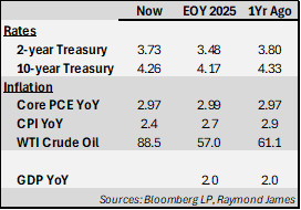 The labor market sits in the middle of that tension. Job Openings (JOLTS), although down from their peak, remain higher than long term averages. Nonfarm Payrolls have bounced around while Labor Participation has fallen below long-term averages, indicating a hidden weakness. Still, the Unemployment Rate is healthy at 4.3%. Those figures suggest the labor market is softer than during its hottest phase but still not weak enough to prompt rapid Fed easing. For fixed income, that matters because a labor market that is cooling without cracking tends to anchor the intermediate part of the curve. Year to date, each employment report has mattered less as a recession alarm and more as a timing signal for when, or whether, the Fed can cut. Versus a year ago, labor is less inflationary but still firm enough to keep policymakers cautious.